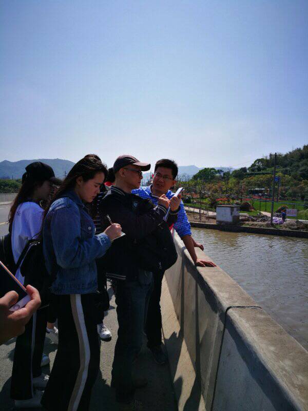 采风小组来到定海区白泉镇,当地农渔办主任引领大家实地察看了舟山最宽的白泉主河,介绍了该河清理河道和长效管理的状况。河道直通东海,沿河建设公园,配合治水工程,风景秀丽。随后参观了正在治理中的舟山市“小微水体”治理典型河东村,村中的方岭下池塘如今引进水库活水,进行了全面治理,将池塘昔日杂乱的环境变成公园式的农居,兼顾了农户池塘用水的习惯,清洁了水质,美化了环境。