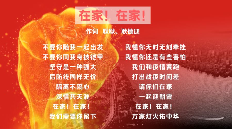 《在家!在家!》的歌词,是在战疫期间偶然看到上海张文宏医生的视频,他创作幽默风趣短视频的劝说大家都要呆在家里把病毒闷死。于是我就思考,希望运用填词的方法,与抗一线的医生同视角,用自己的歌词去向大家发出倡议,都在家中为抗疫做出贡献。
