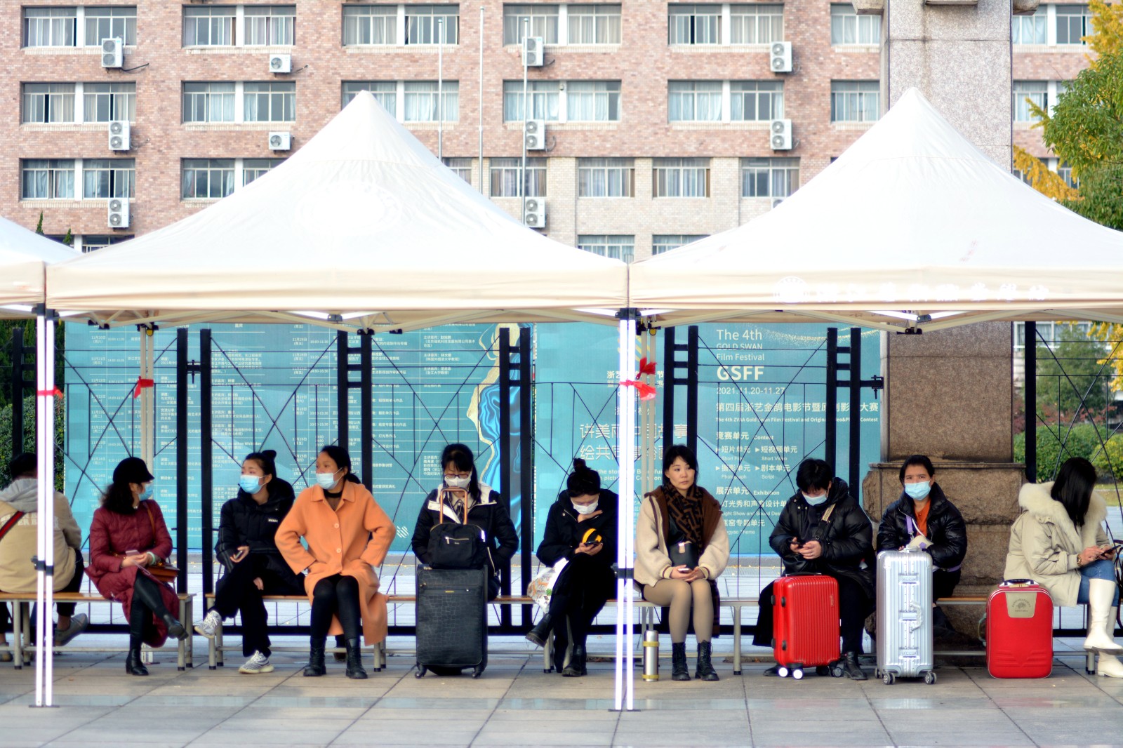 为响应国家疫情防控要求,陪考家长不能陪同考生进入学校。学校在大门广场准备了长椅与遮阳棚供家长休息等候。来自温州的家长表示,陪考其实是一个孩子与家长相互配合的过程,毕竟考试还是需要考生自己去完成,家长只能在后勤工作上为孩子提供最大的帮助,给孩子加油打气。希望孩子可以考出好成绩,进入自己理想的学校。
