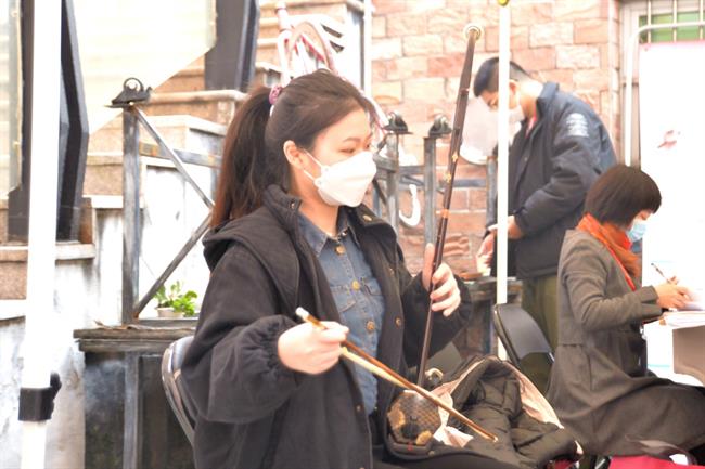 音乐考场分声乐、器乐、键盘、视唱练耳,即将进场的考生们在最后的准备时间里调试着自己的乐器,整理自己的穿着,回顾准备的曲目。一位来自金华永康报考声乐专业的考生为了这次考试准备了两年之久,“在备考中我也出现过迷茫,但最终还是坚持下来了,希望今天能好好表现,取得一个好成绩。”