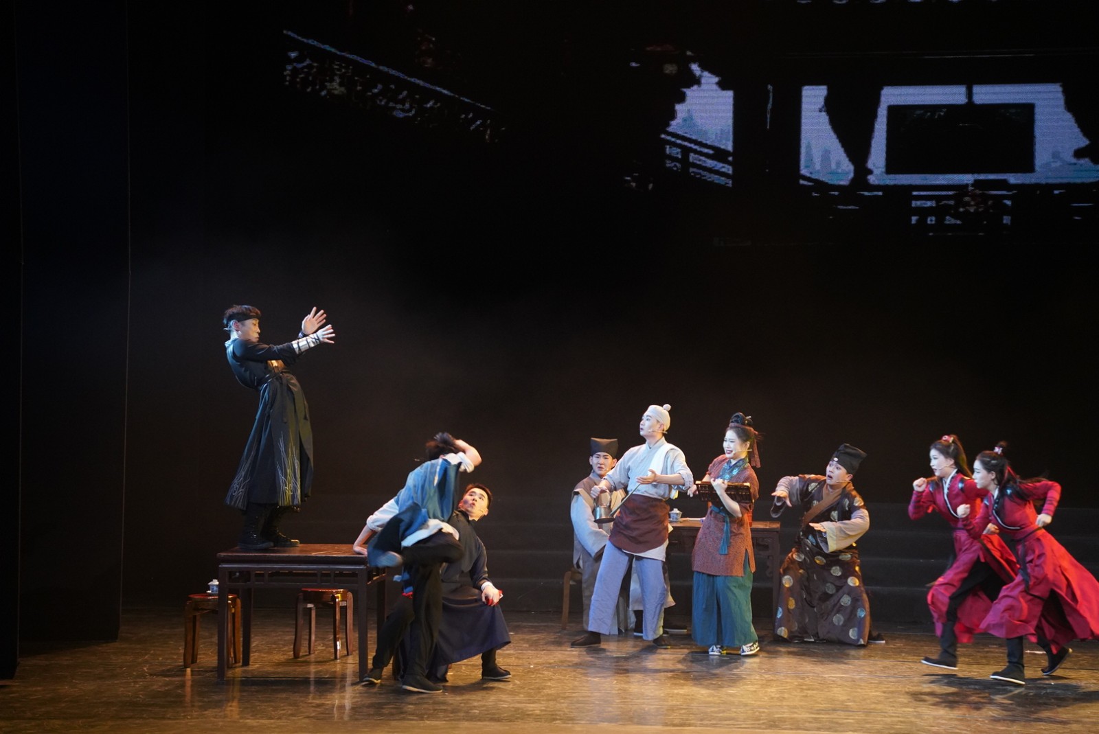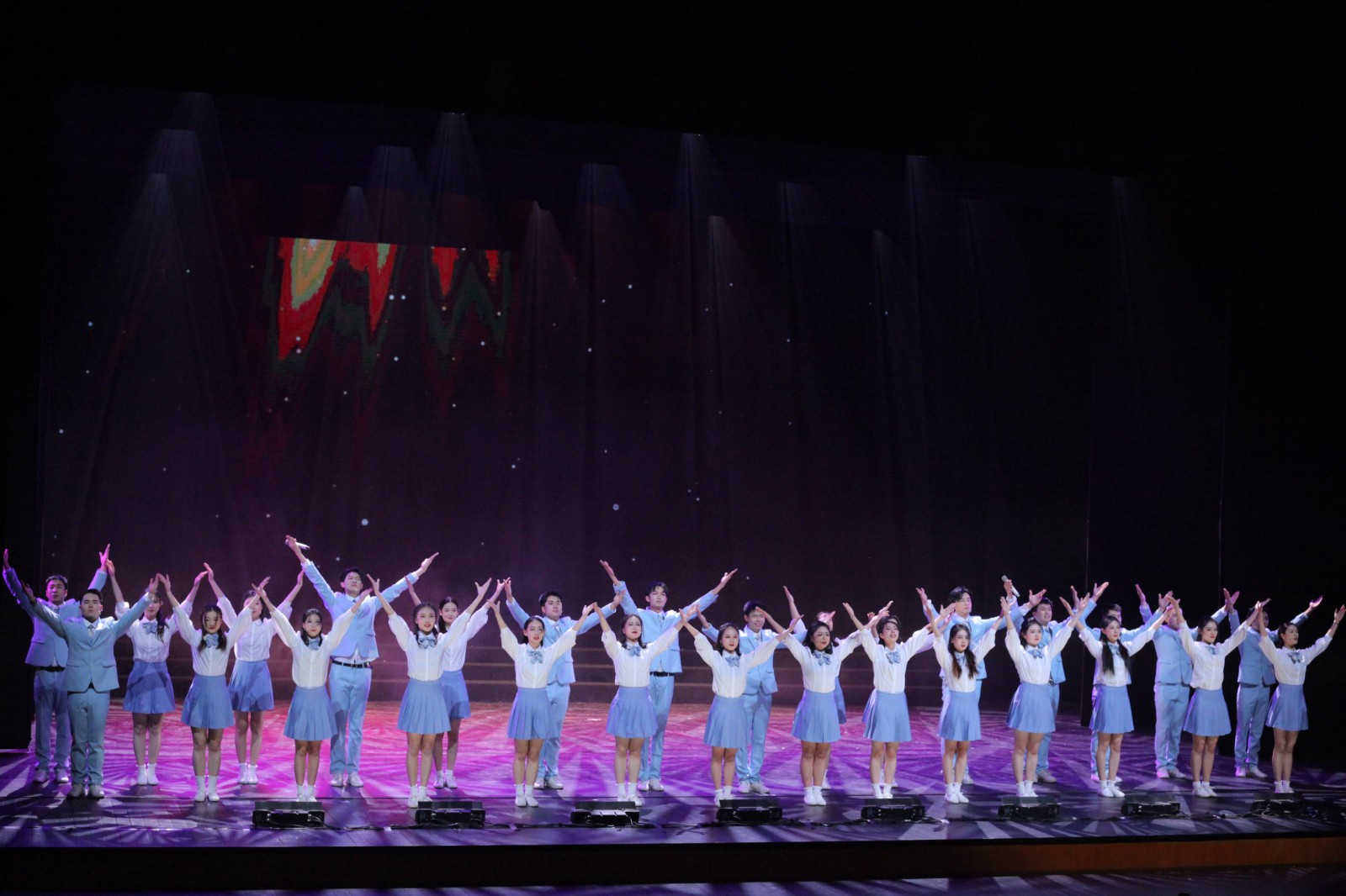 还有音乐剧片段《爱乐之城》、原创小品《壹玖乐队》、舞剧《永不消逝的电波》选段、诗朗诵《我的祖国》、歌曲《这世界那么多人》等精彩的表演赢得了阵阵掌声。