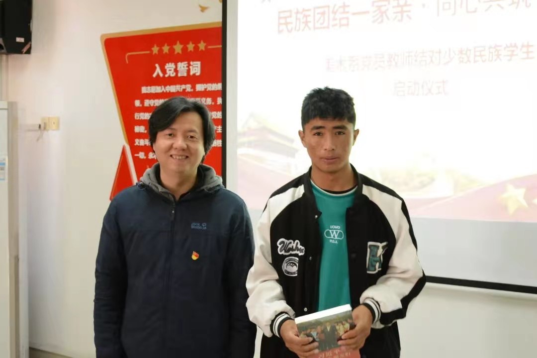党员教师为结对的少数民族学生亲切交流,并赠送了书籍,师生们互留联系方式并合影留念。