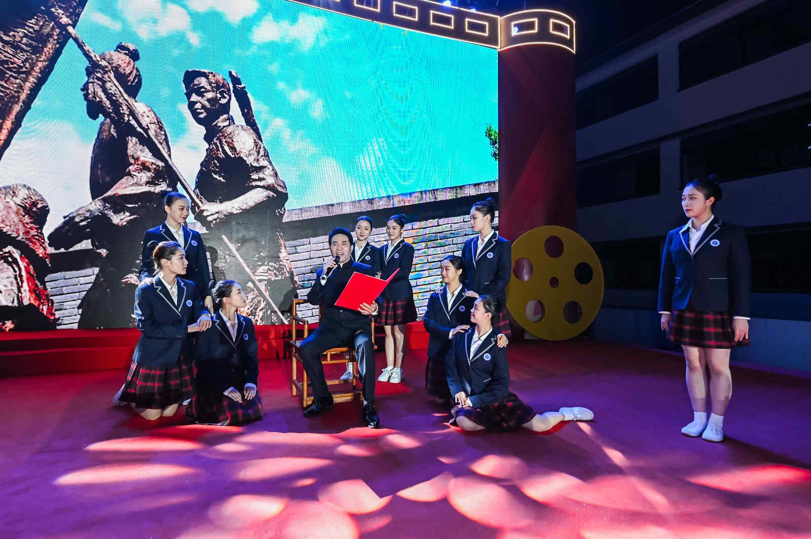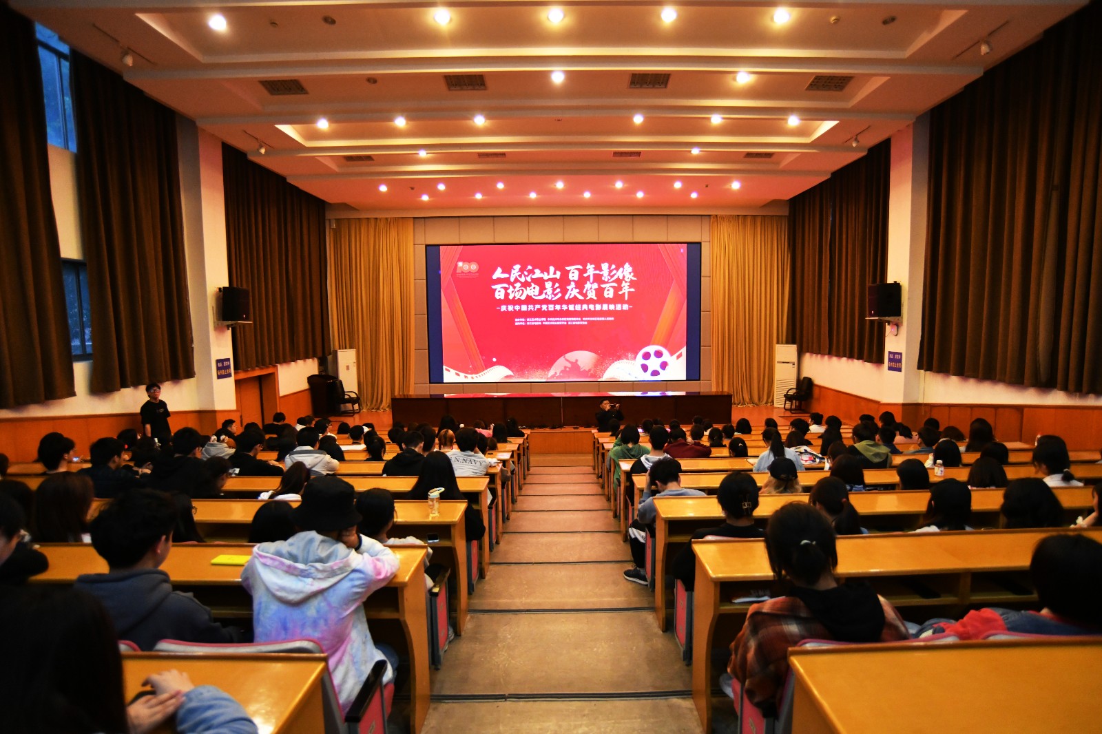 当晚,音乐系、影视技术系、文化管理系清明留宿学生在分会场通过直播观看开幕式,并观看影片《建党伟业》,接受党史教育。