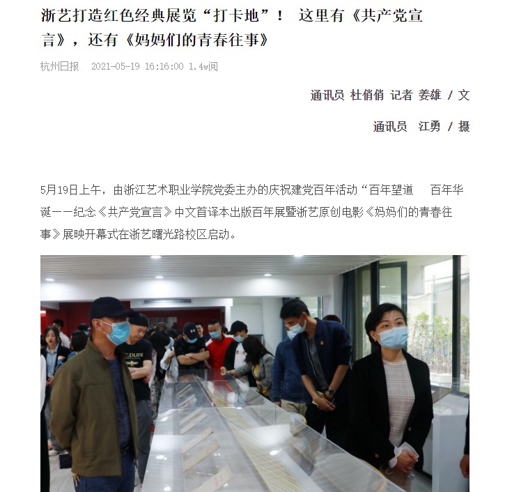 杭州日报:浙艺打造红色经典展览“打卡地”! 这里有《共产党宣言》,还有《妈妈们的青春往事》