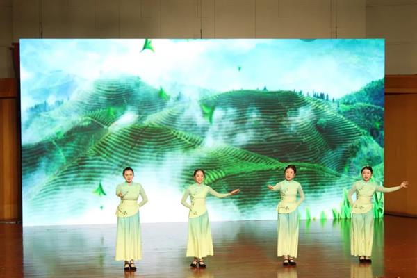 采茶春日,香飘南国;一道风景,一份情致。20歌舞表演班的潘颖欣、蔡依娜、沈娅如、朱硕带来的《采茶舞曲》,淋漓尽致地展示了江南茶女田间劳作的轻盈身姿和快乐心情。