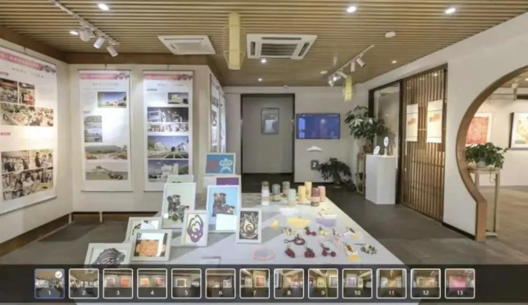 本次电子展览还原了浙艺· 柯城校地合作成果展暨余东农民画展的实地场景。点开链接,观众不仅可以看到余东村农民画,还可以体验具有农民画元素的木刻版画、扎染、剪纸、编织等非遗研学课程。