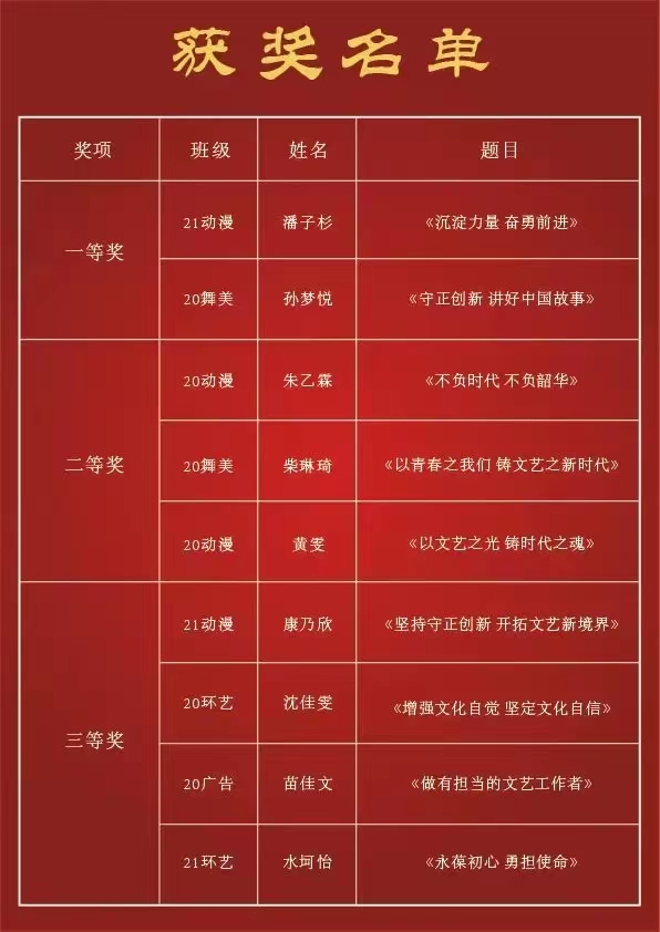 经过评委们的综合评审,评选出一等奖2名,二等奖3名,三等奖4名。
