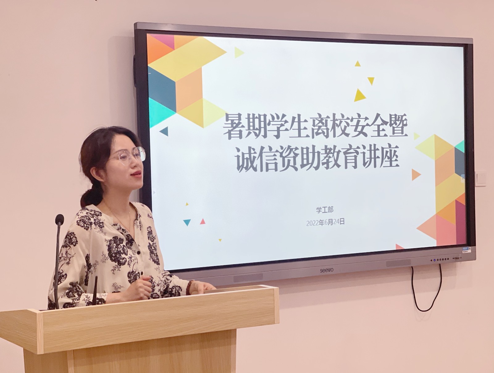 为进一步落实立德树人根本任务,增强学生的诚信意识、安全意识、责任担当和感恩意识,强化资助育人成效,我校学工部于6月24日开展学生暑期离校安全暨资助诚信教育讲座,学工部副部长吴颖,浦沿中队刘万胜警官,各学院学生代表参加了讲座。