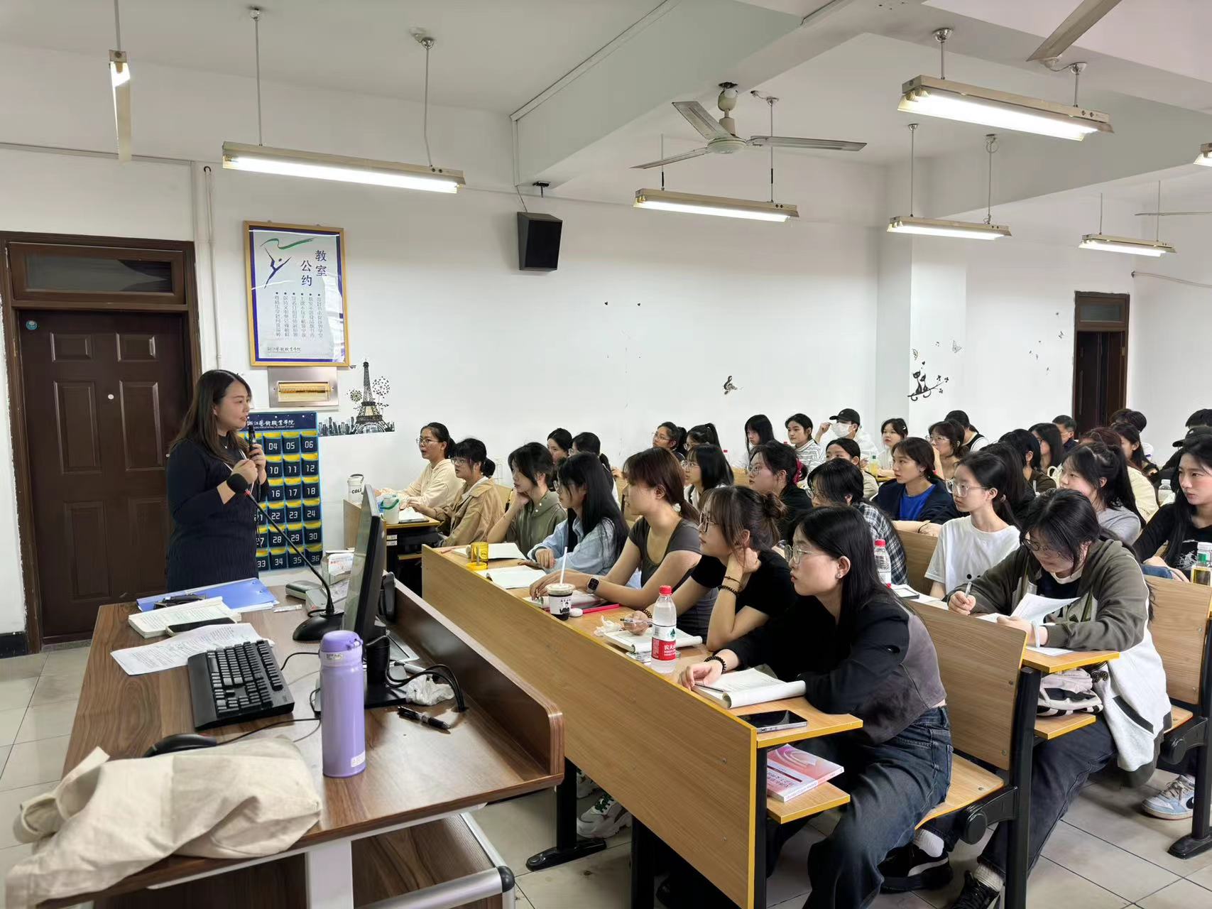 8602教室,校领导和同学们一同听取了思政课教师胡芊的《思想道德与法治》课程。胡芊结合刚刚圆满落下帷幕的杭州亚运会,生动讲述了一代又一代的运动健儿在不同时空里完成奥运梦的接力,阐述了“国家好,民族好,大家才会好”的朴实道理,激励同学们深刻认识新时代赋予青年的新使命,将“小我”融入“大我”,与新时代同向同行、共同前进。