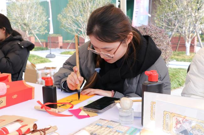 活动现场特邀自然造物、田博匠新、文博公司等非遗企业参与,摊位上非遗手工艺品琳琅满目,引得不少老师、同学驻足观赏。