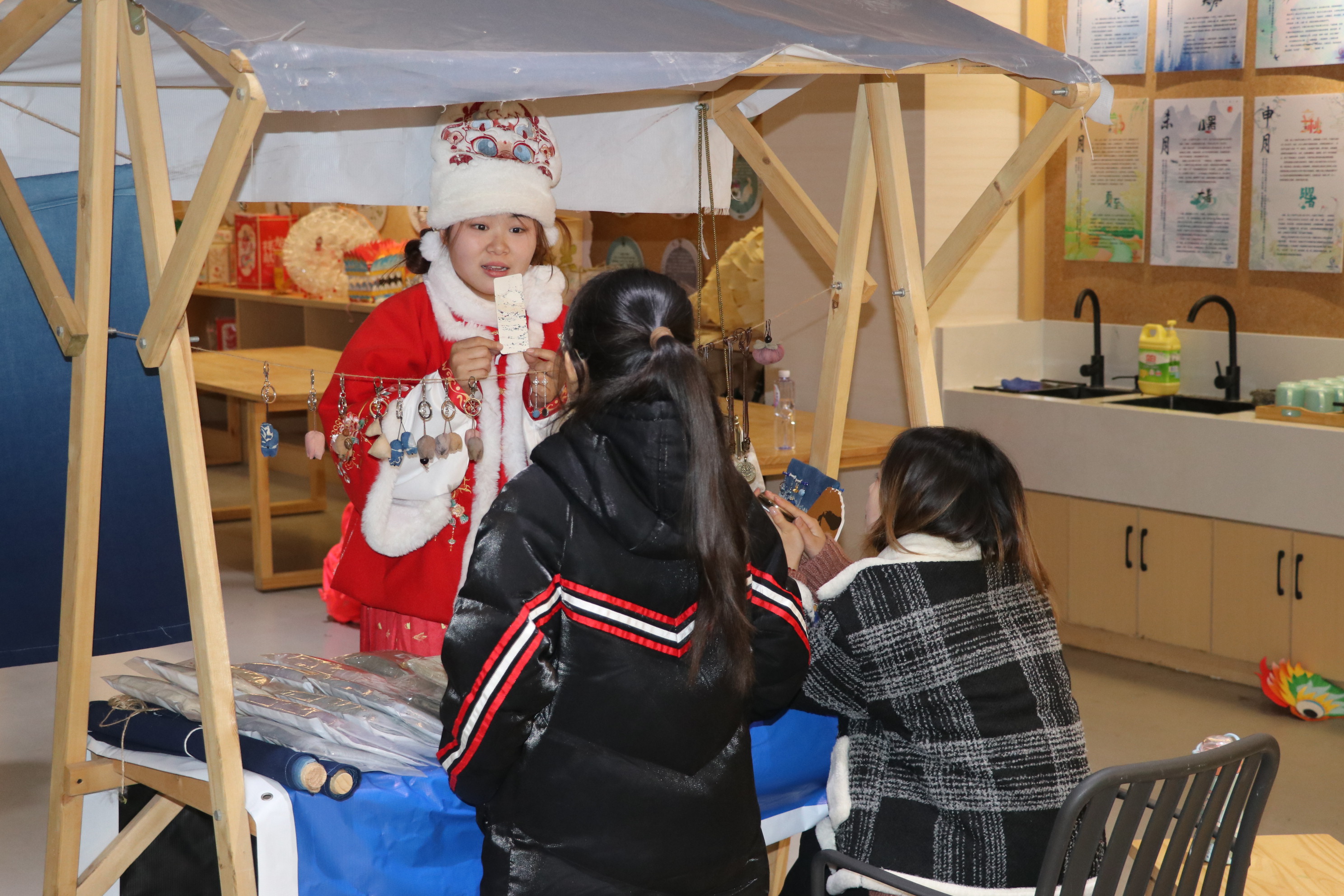 非遗添年味,文化进万家。非遗创意产业学院首批创业导师徐夏怡参与本次活动,对学生们的手艺给予肯定。“在这次活动中我不仅见识到了民风民俗,提升了专业能力,也感受到了大家的团队协作精神,为我的青春时光留下了浓墨重彩的一笔。”民族传统技艺专业学生陈果儿说。